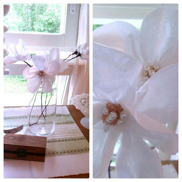 Tein kotona piirakan puolivalmiiksi. Pakkasin piirakan pohjan, kastikkeen ja kirsikat erillään kylmälaukkuun ja päätin koota piirakan täällä perillä. Katoimme anopin kahvipöytään kesäastiaston, herkut ja syntymäpäiväruusut. Ajattelin että on maistuva syntymäpäivälahja tämä piirakka!